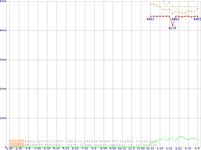 | Celeron 1.40GHz FC-PGA2 バルクの価格推移(税込み相当額) |