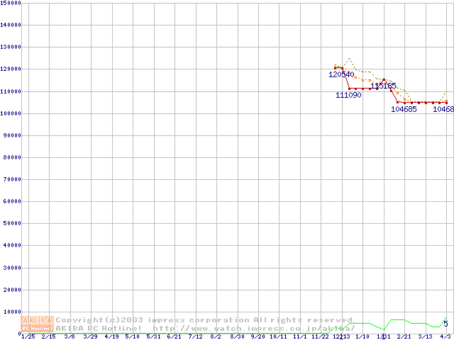 | Opteron 248(2.2GHz) リテールパッケージの価格推移(税込み相当額) |
