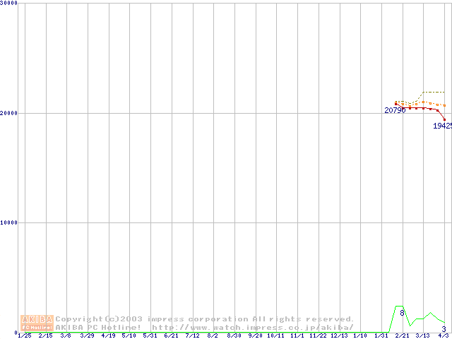 Socket 478 (micro-PGA,FSB 800MHz,L2 1MB,Hyper-Threading,Prescott)の最安値推移