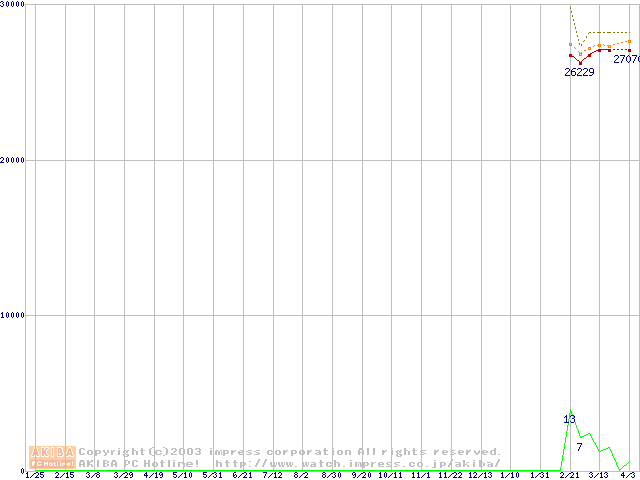 Socket 478 (micro-PGA,FSB 800MHz,L2 1MB,Hyper-Threading,Prescott)の最安値推移