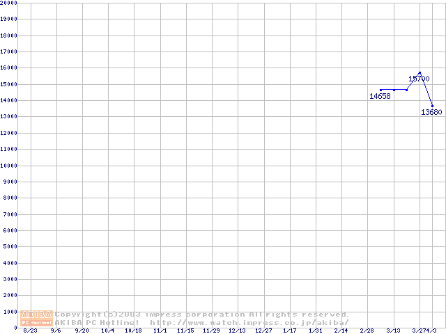 | [↑前グラフ]: | Travelstar 80GN (9.5mm,4200rpm,UltraATA/100,2MB,FDB,40GB/Platter)の最安値推移 |