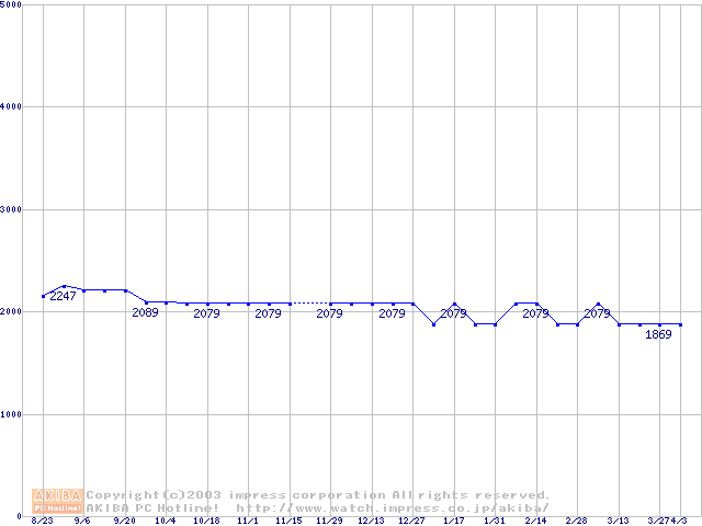 | [↑前グラフ]: | Socket A (OPGA,FSB 266MHz,L2 64KB,Applebred)の最安値推移 |