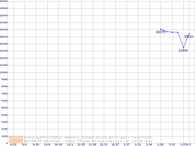 | [↑前グラフ]: | Socket 478 (micro-PGA,FSB 533MHz,L2 512KB,Hyper-Threading,Northwood)の最安値推移 |