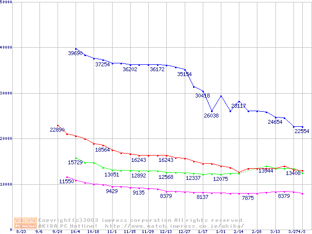 | [↓次グラフ]: | Deskstar 7K250 (7200rpm,UltraATA/100,FDB)の最安値推移 |