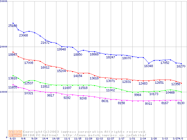 | [↓次グラフ]: | MaXLine Plus II (7200rpm,8MB,UltraATA/133,FDB)の最安値推移 |