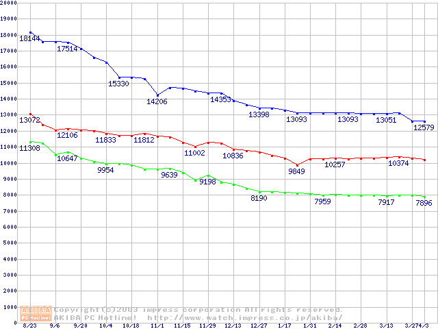 | [↑前グラフ]: | Fireball 3 (5400rpm,UltraATA/133,2MB,FDB)の最安値推移 |