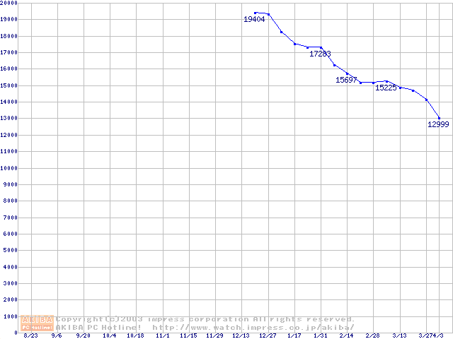 | [↑前グラフ]: | Barracuda 7200.7 (7200rpm,SerialATA,8MB,80GB/Platter,FDB)の最安値推移 |
