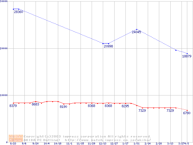 | [↓次グラフ]: | WD Caviar (7200rpm,UltraATA/100,2MB)の最安値推移 |