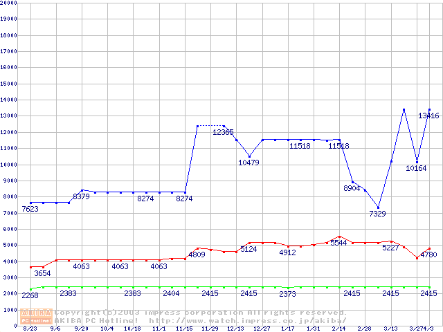 | [↓次グラフ]: | Socket 478 (micro-PGA,FSB 800MHz,L2 512KB,L3 2MB,Hyper-Threading,Gallatin)の最安値推移 |