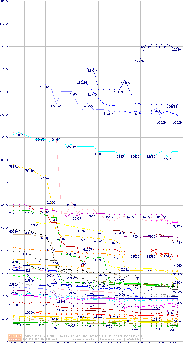 CPU主要製品の最安値推移