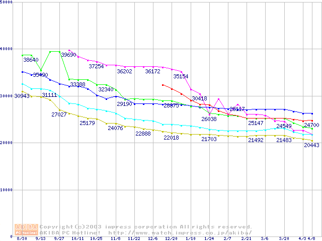 HDD主要製品の最安値推移