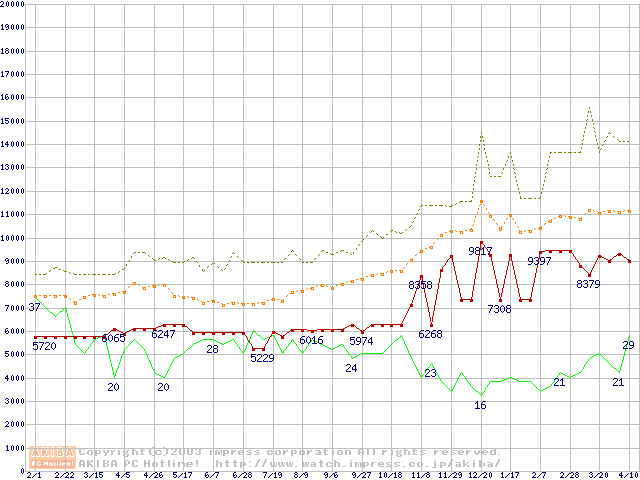 | PC133 SDRAM 512MB(CL3)の価格推移(税込み相当額) |
