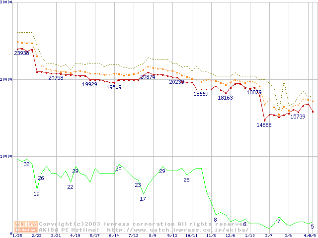 | 2.40B GHz リテールパッケージの価格推移(税込み相当額) |
