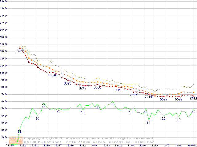 | Barracuda 7200.7 ST380011A (80GB)の価格推移(税込み相当額) |