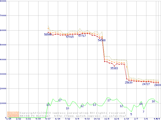 | Athlon XP 3200+ (2.2GHz) リテールパッケージの価格推移(税込み相当額) |