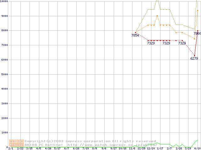 | PC3200 DDR SDRAM 256MB(CL3) ECC Registeredの価格推移(税込み相当額) |