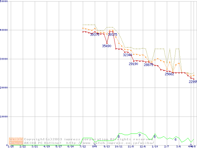 | WD Caviar WD2500JD (250GB)の価格推移(税込み相当額) |