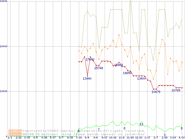 | PC4000 DDR SDRAM 512MBの価格推移(税込み相当額) |