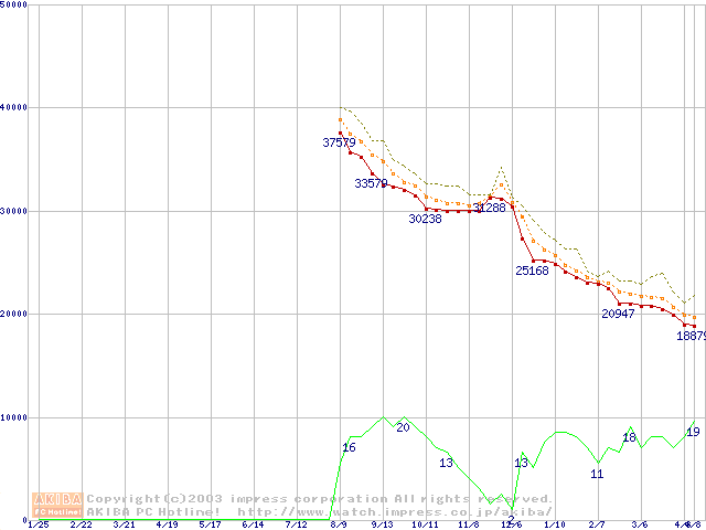 | Deskstar 7K250 HDS722525VLAT80 (250GB,8MB)の価格推移(税込み相当額) |