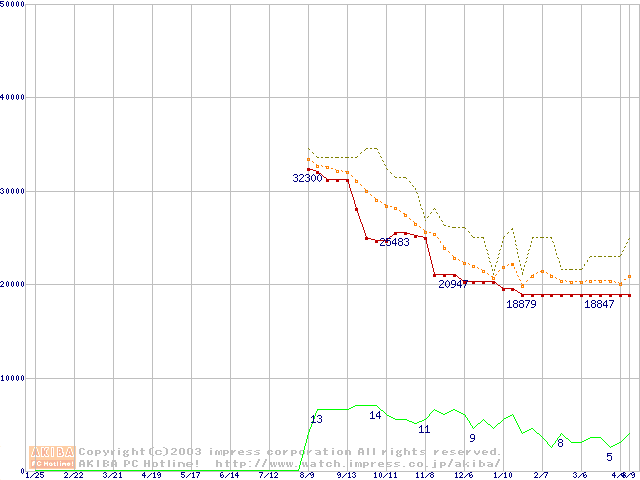 | Opteron 140(1.4GHz) リテールパッケージの価格推移(税込み相当額) |