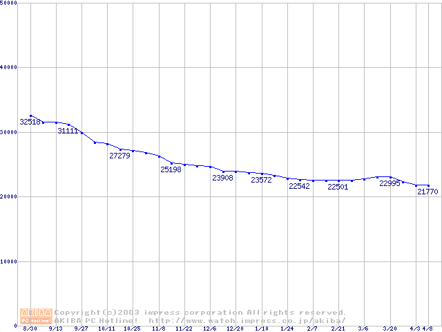 | [↑前グラフ]: | Deskstar 7K250 (7200rpm,UltraATA/100,FDB)の最安値推移 |