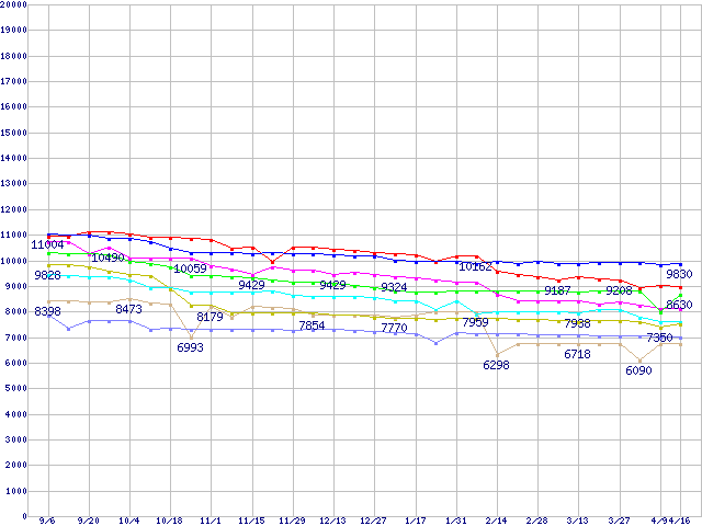 | [↓次グラフ]: | CPU主要製品(最安値1万円~2万円未満)の最安値推移 |