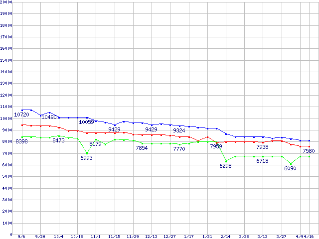 | [↑前グラフ]: | CPU主要製品(最安値6万円以上)の最安値推移 |