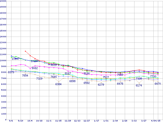| [↑前グラフ]: | HDD 30GB~80GB未満の最安値推移 |