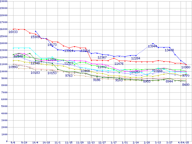 ※点線部は販売店が確認できなかった、または調査データがないことを示します