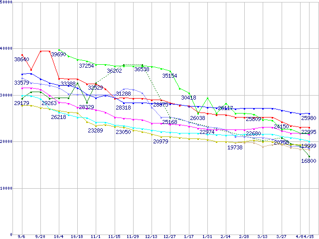 | ※製品名をクリックすると個別のグラフを表示します ※点線部は販売店が確認できなかった、または調査データがないことを示します | |