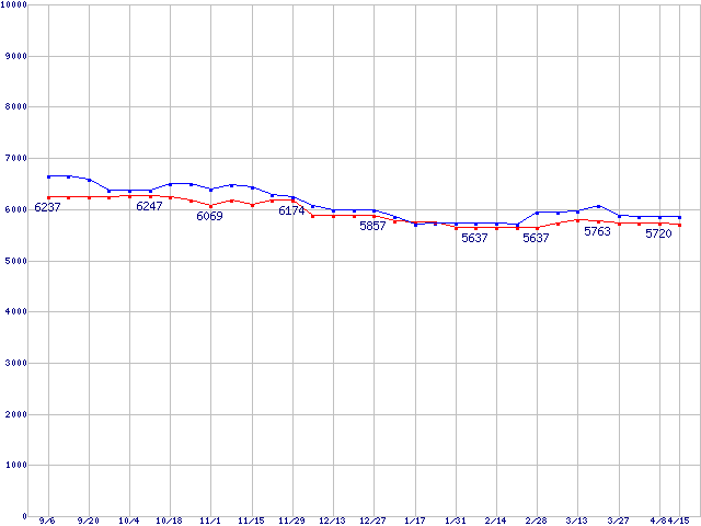 | [↑前グラフ]: | DiamondMax Plus 9 (7200rpm,2MB,UltraATA/133,FDB)の最安値推移 |