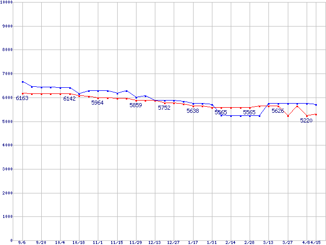 | [↑前グラフ]: | DiamondMax 16 (5400rpm,UltraATA/133,2MB,80GB/Platter,FDB)の最安値推移 |