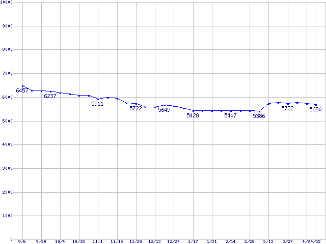 | Barracuda 5400.1 (5400rpm,UltraATA/100,2MB,FDB)の最安値推移 |