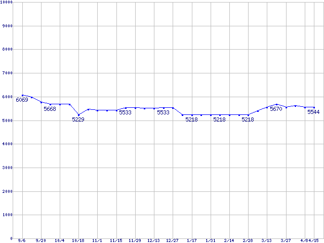 | [↑前グラフ]: | Barracuda 5400.1 (5400rpm,UltraATA/100,2MB,FDB)の最安値推移 |