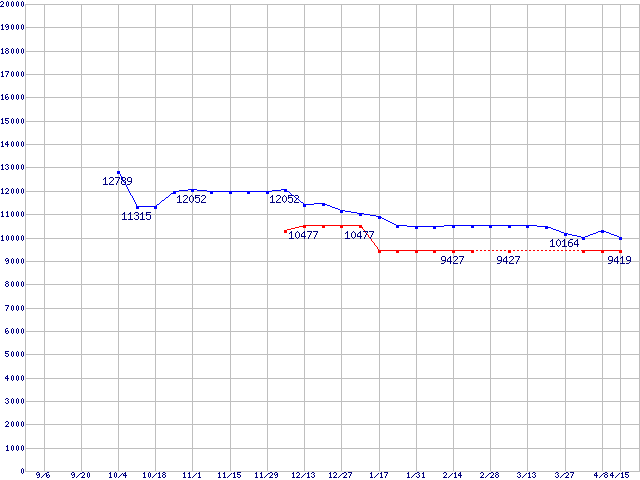 | [↑前グラフ]: | SpinPoint P80 (7200rpm,UltraATA/133,8MB)の最安値推移 |
