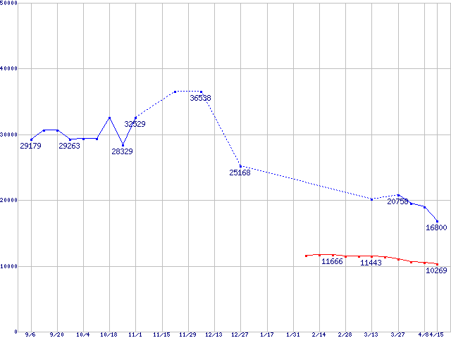 | [↑前グラフ]: | WD Caviar (7200rpm,SerialATA,8MB)の最安値推移 |