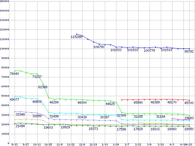 | ※製品名をクリックすると個別のグラフを表示します ※点線部は販売店が確認できなかった、または調査データがないことを示します | |