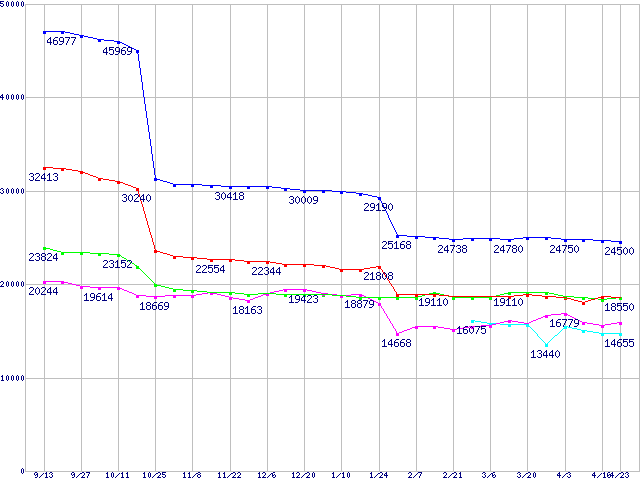 | ※製品名をクリックすると個別のグラフを表示します ※点線部は販売店が確認できなかった、または調査データがないことを示します | |