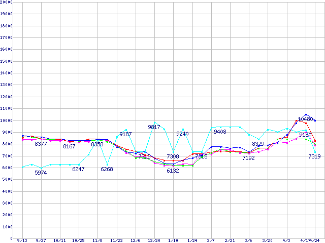 | メモリ主要製品(最安値5千円~1万円未満)の最安値推移 |