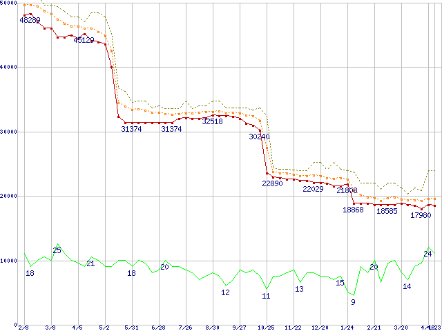 Socket 478 (micro-PGA,FSB 533MHz,L2 512KB,Northwood)の最安値推移