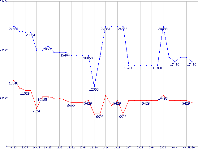 | [↑前グラフ]: | PC4000(DDR500) DDR SDRAM DIMMの最安値推移 |