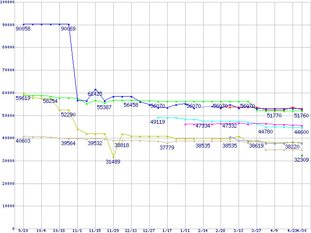 | [↓次グラフ]: | CPU主要製品(最安値6万円以上)の最安値推移 |