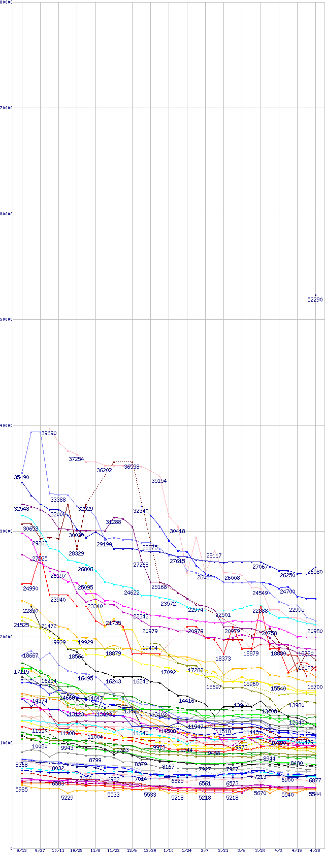 ※製品名をクリックすると個別のグラフを表示します ※点線部は販売店が確認できなかった、または調査データがないことを示します |