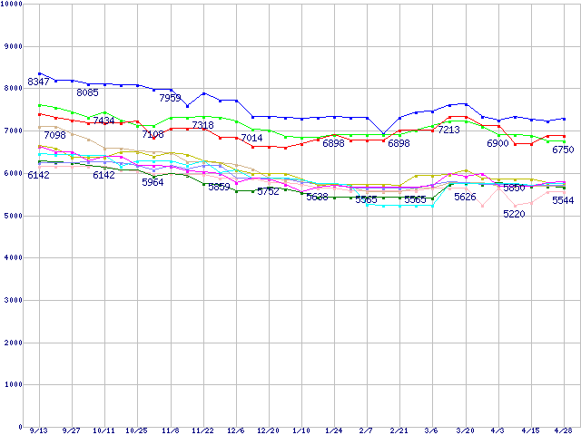 HDD 30GB~80GB未満の最安値推移