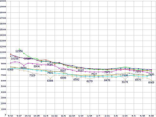 | ※製品名をクリックすると個別のグラフを表示します ※点線部は販売店が確認できなかった、または調査データがないことを示します | |