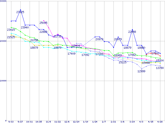 | ※製品名をクリックすると個別のグラフを表示します ※点線部は販売店が確認できなかった、または調査データがないことを示します | |