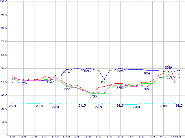 | [↓次グラフ]: | メモリ主要製品(最安値5千円~1万円未満)の最安値推移 |