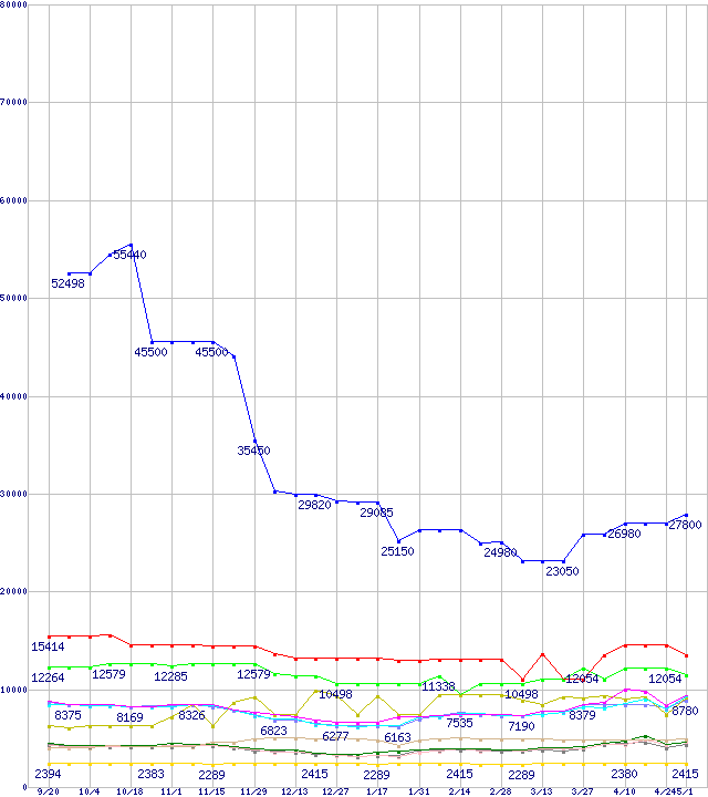 メモリ主要製品の最安値推移