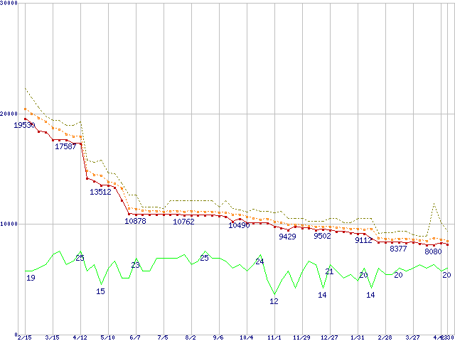 | Athlon XP 2400+ (2GHz) リテールパッケージの価格推移 |