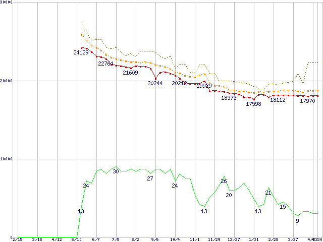 Socket 478 (micro-PGA,FSB 800MHz,L2 512KB,Hyper-Threading,Northwood)の最安値推移